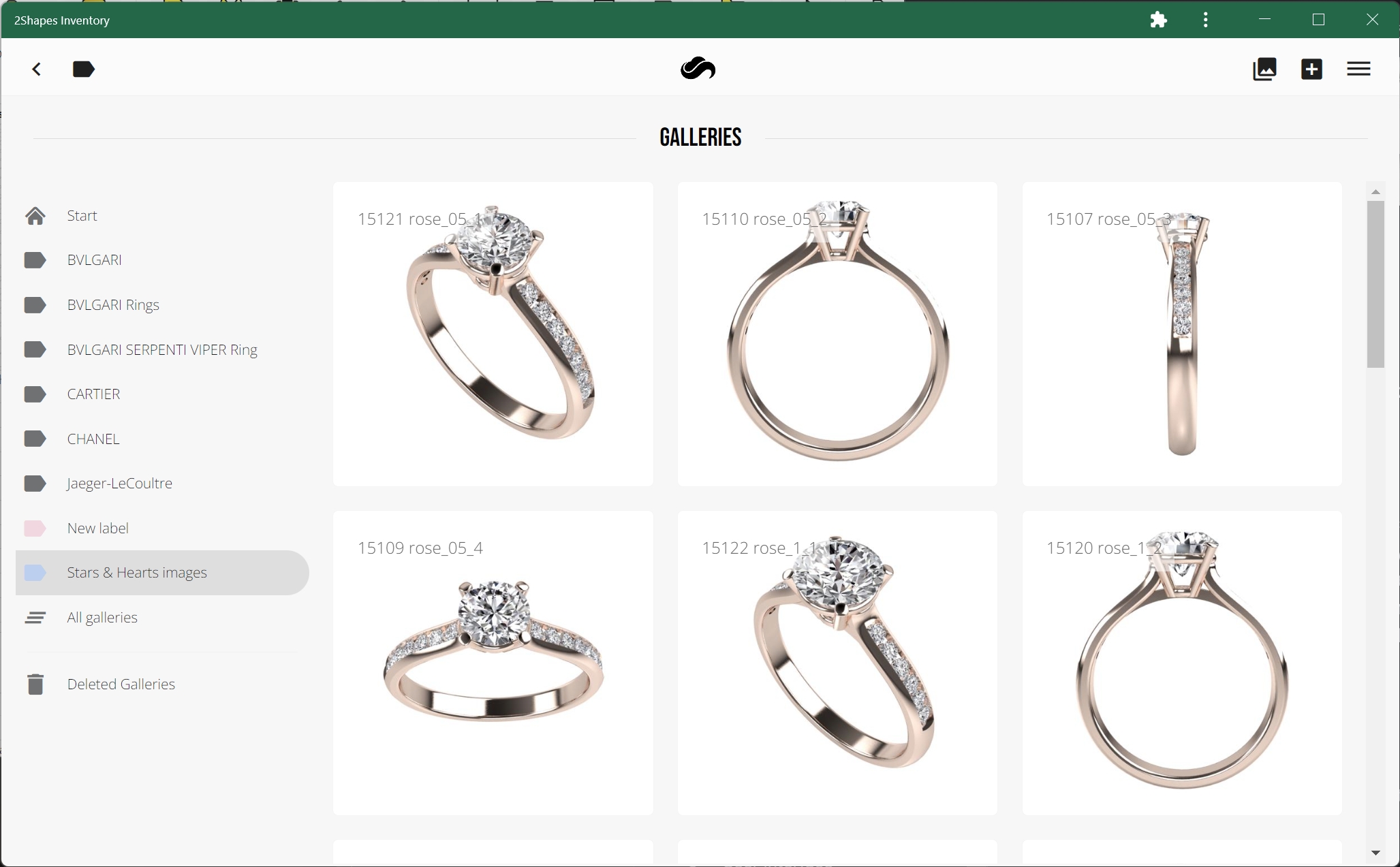 Running this command will open a new window in your internet browser that shows the galleries and labels you keep in 2Shapes Design.