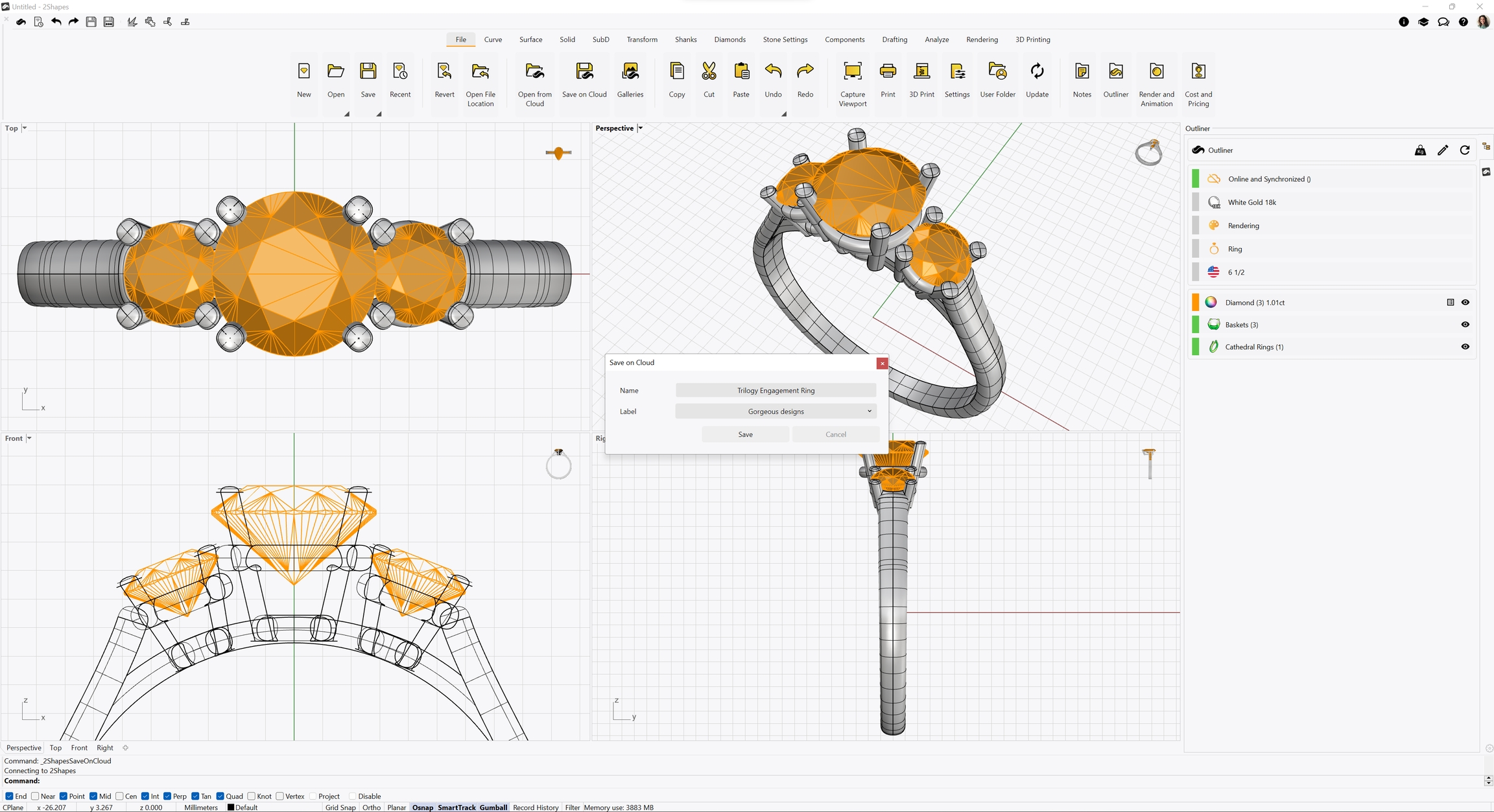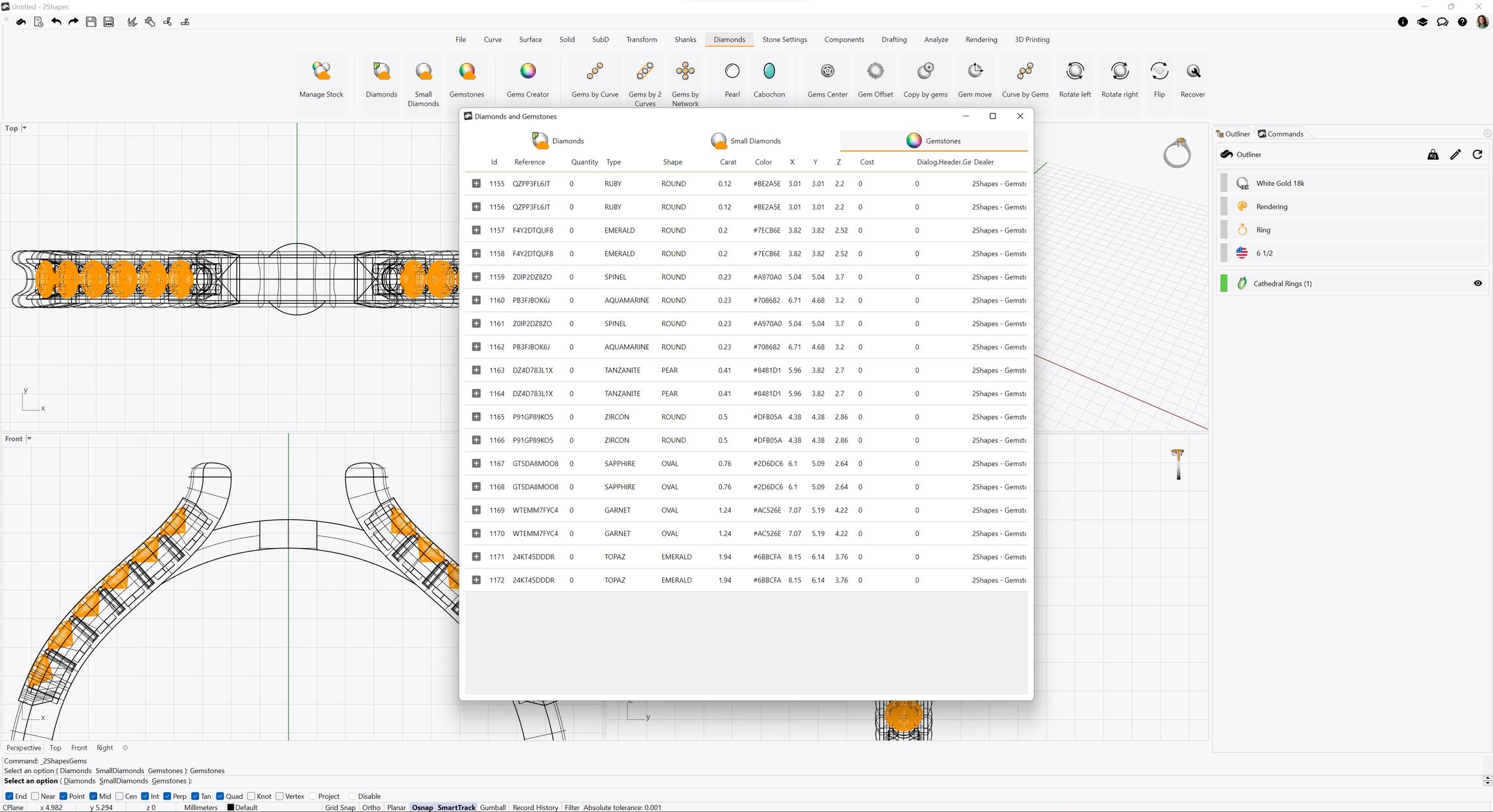 With this command, you can add existing gemstones from your 2Shapes Pricing diamond groups to your 2Shapes for Rhino file.