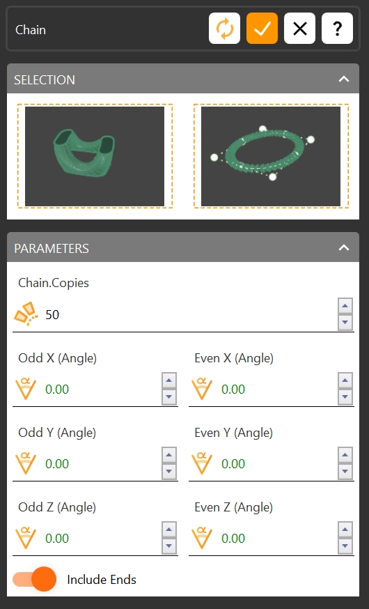 ChainThe chain command allows us to select a chain link and copy it by a curve, being able to change parameters such as rotations, copies, ... This can be very useful for calculating the necessary links in a chain, even for chain rendering.
