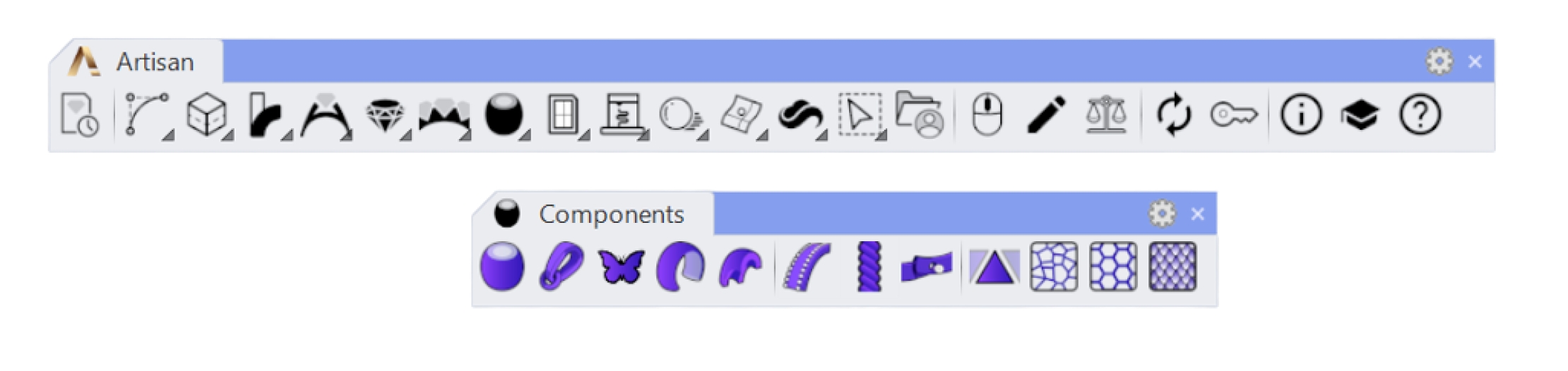 On this tab you can find commands to create other jewelry components such as beads, bails, bangles, among other. Here you even have tools to make 2Shapes recognize custom geometry as Elements.