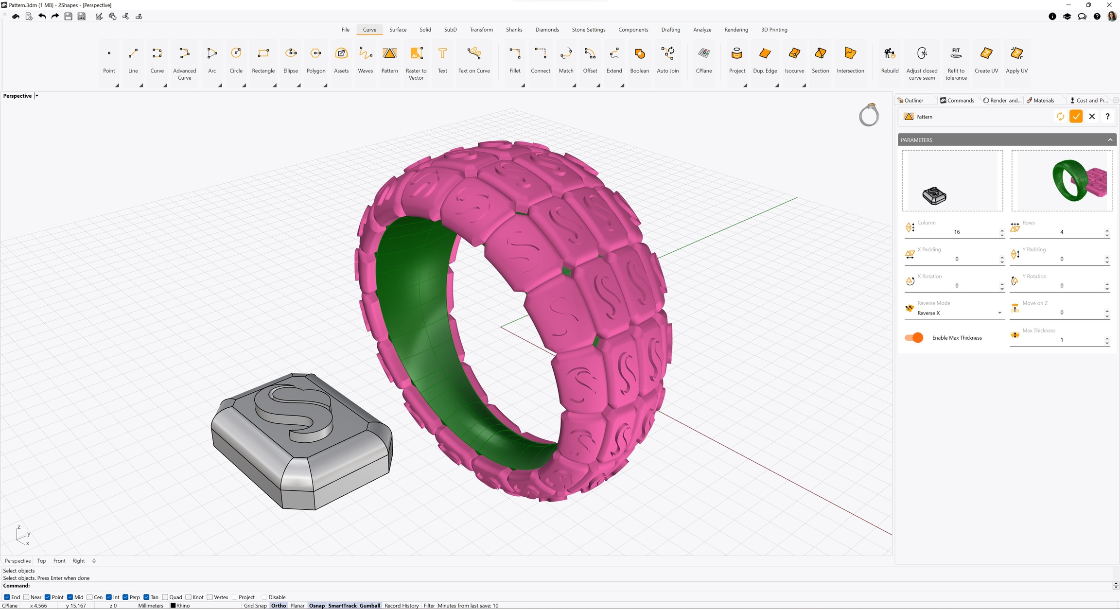Charm curves: Using this curve you can create a 3D object with a bombé finish, ideal for the creation of charms and pendants.