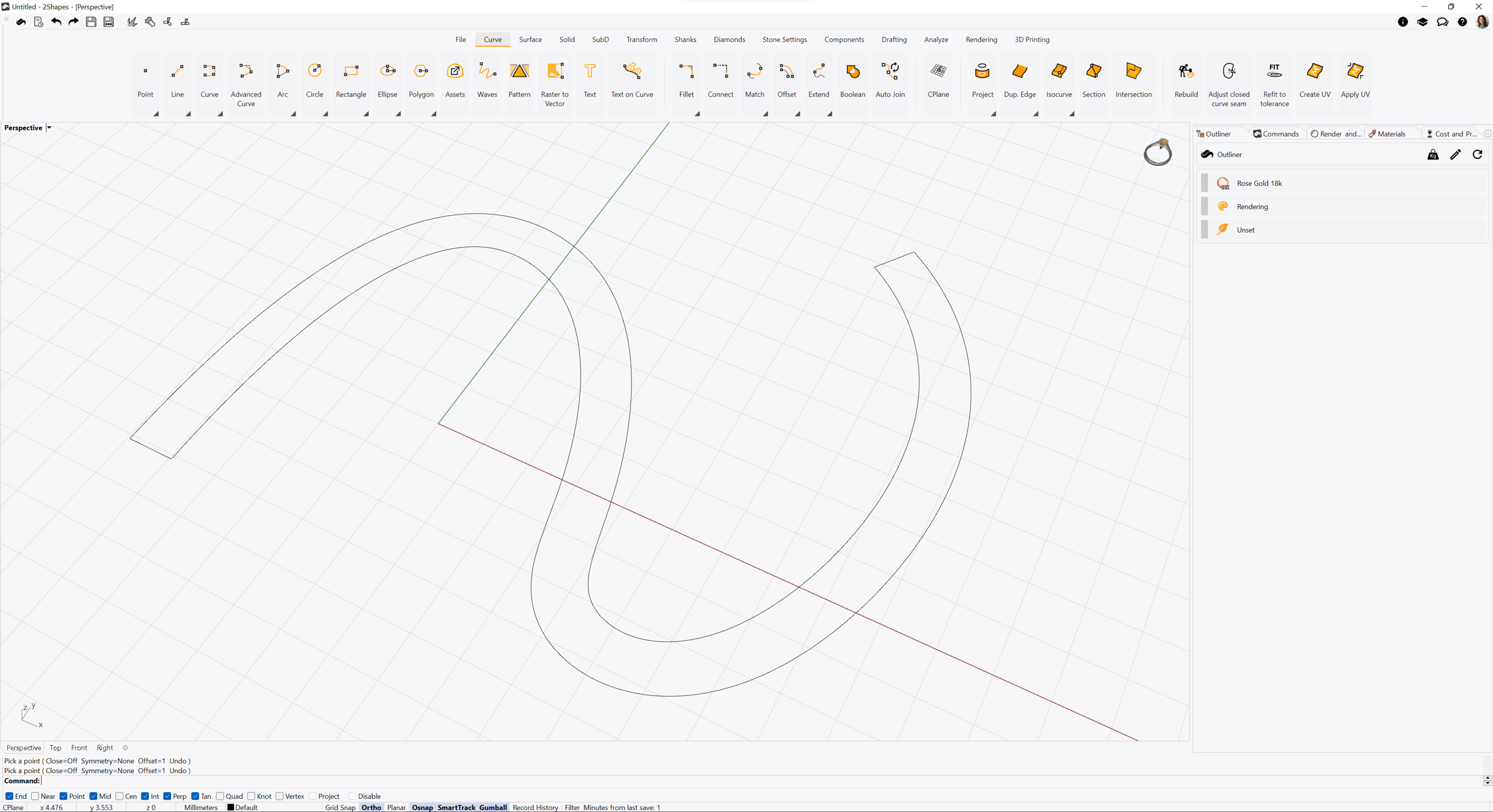Bezel curves: These curves are used exclusively to give a revolving shape to Bezel gemsets.