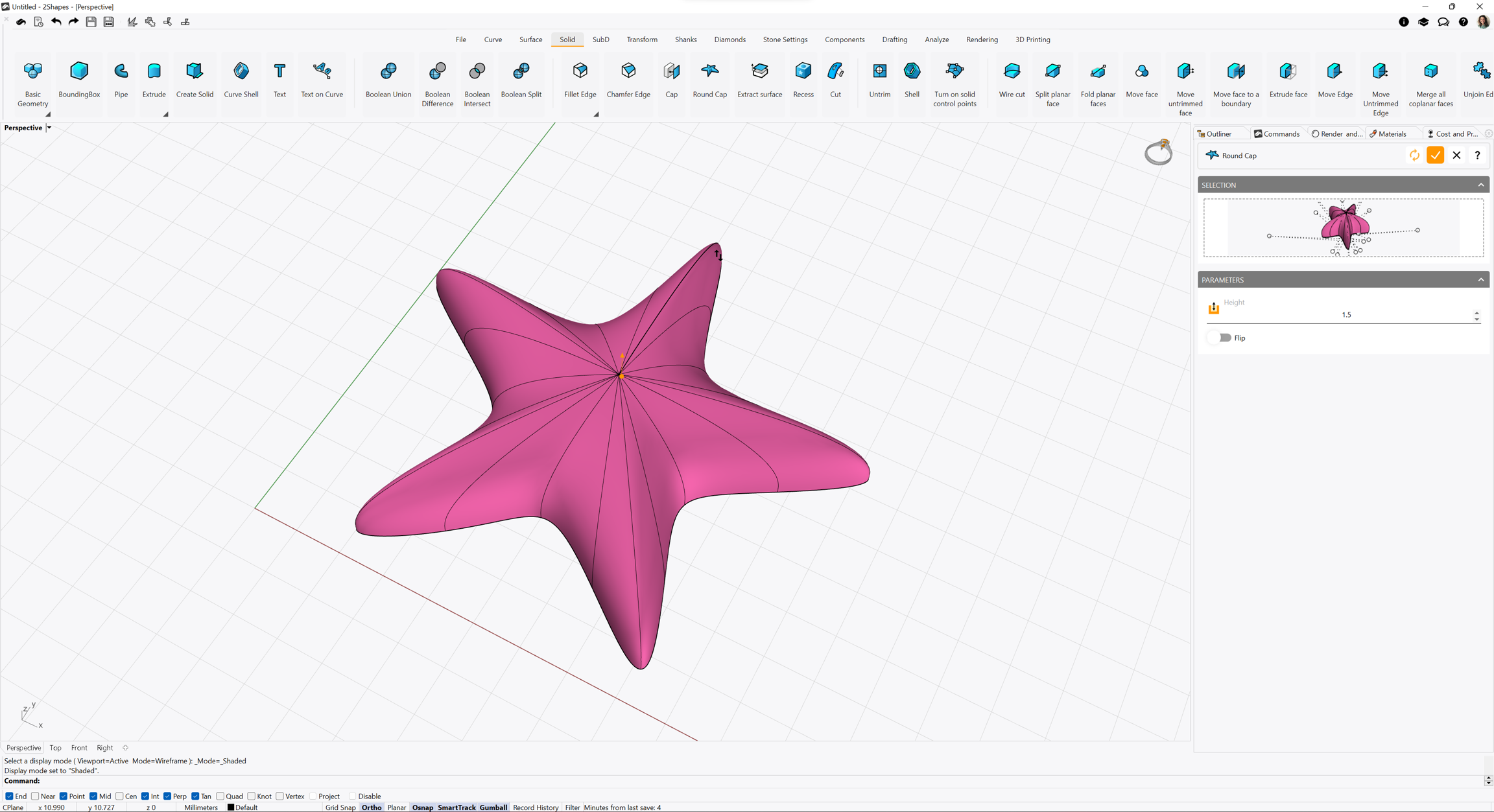 Cap RoundUsing this command allows you to create dome-shaped enclosures following the form of a closed curve.