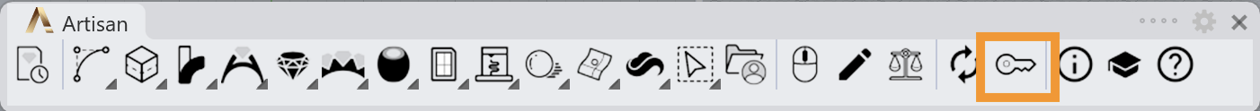 In Rhino or RhinoArtisan, run the command: **ArtisanLicense** o click on the toolbar: