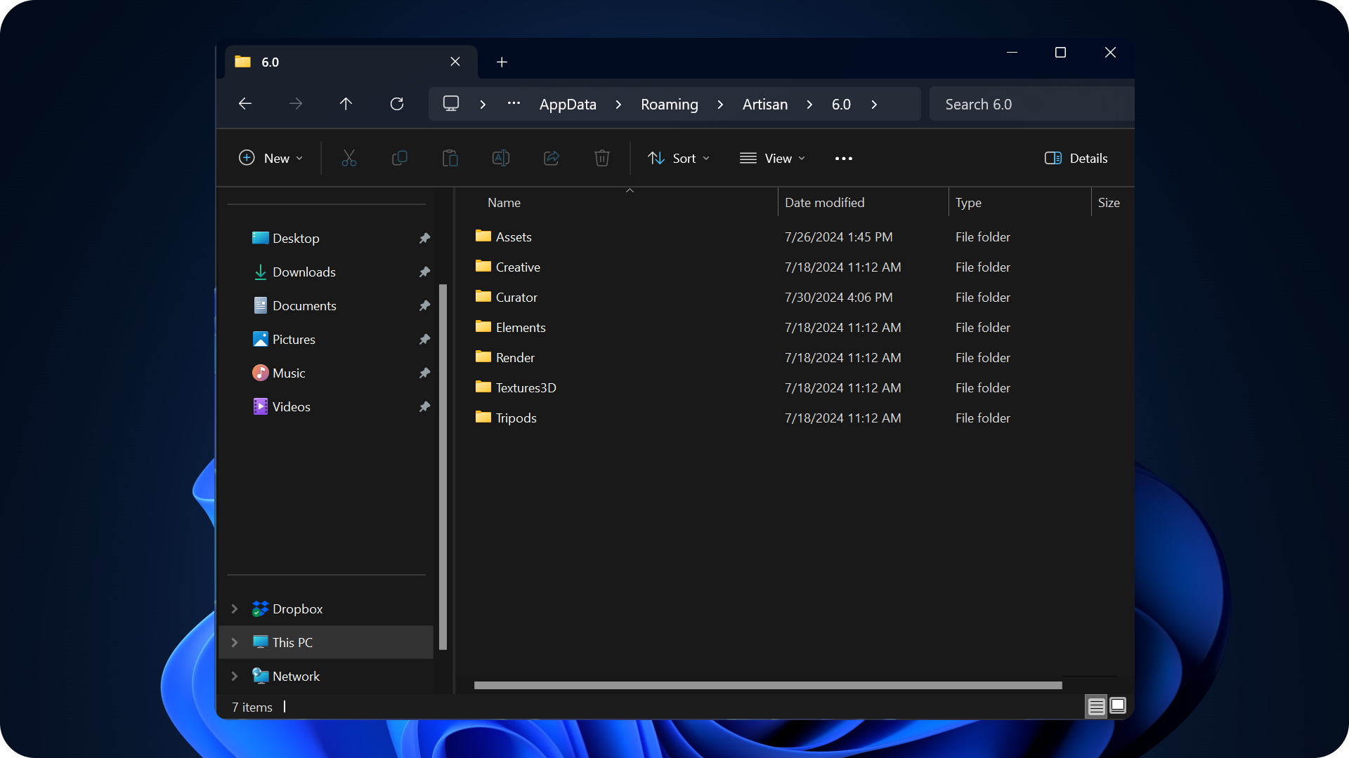 * Go to `AppData`, then `Roaming`, then `Artisan`, and finally `6.0`.