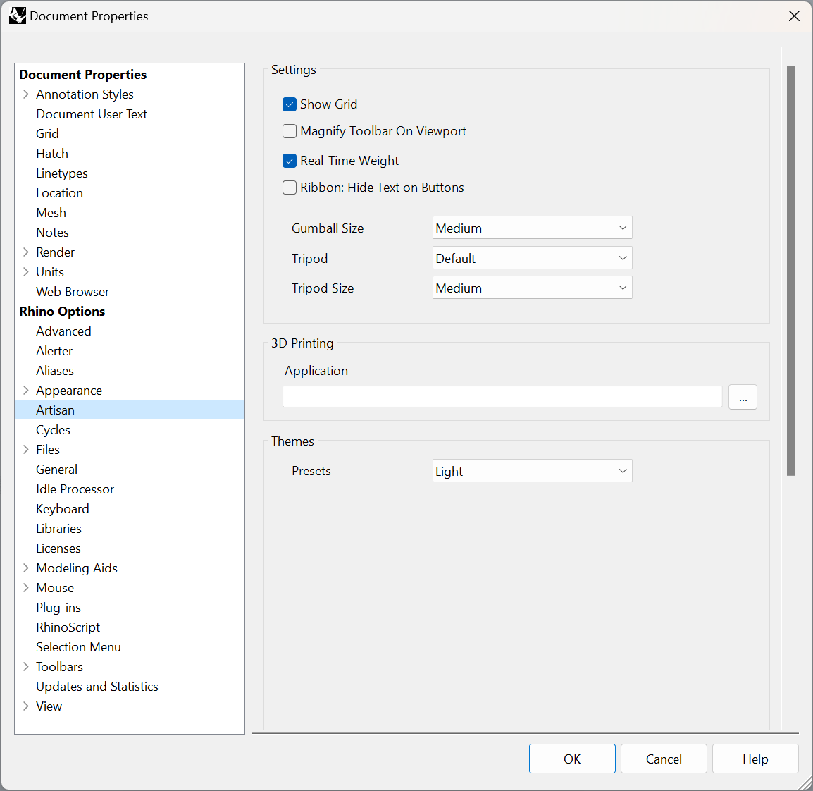 RhinoArtisan adds some new menus to the Rhino Options window.